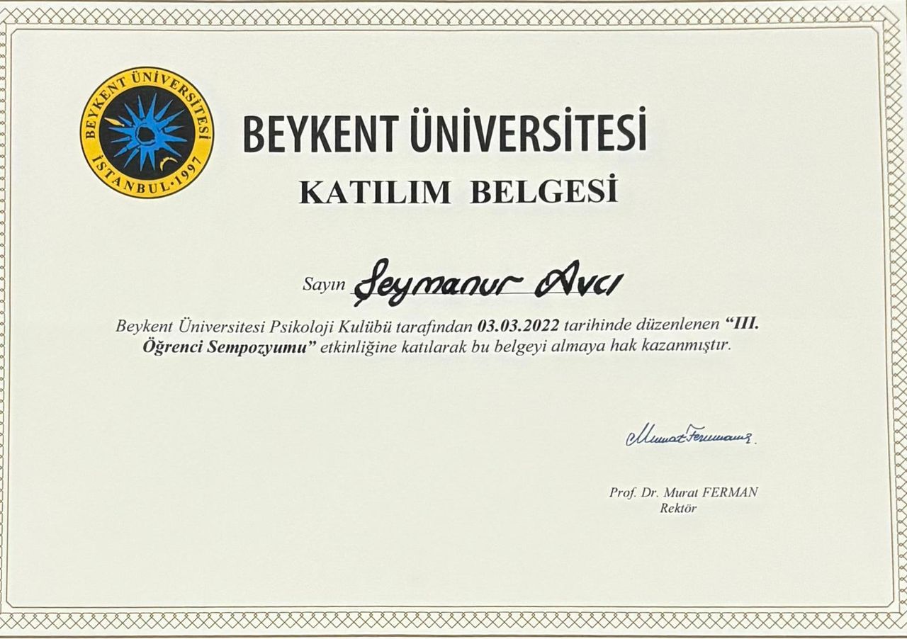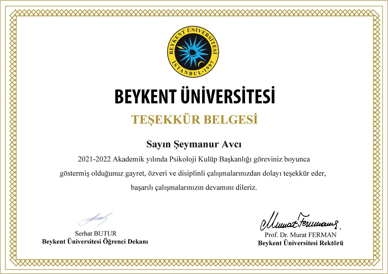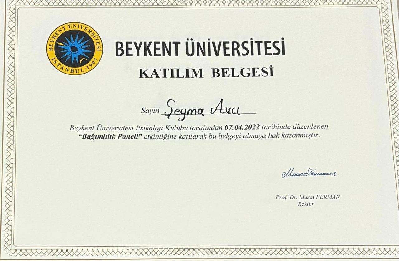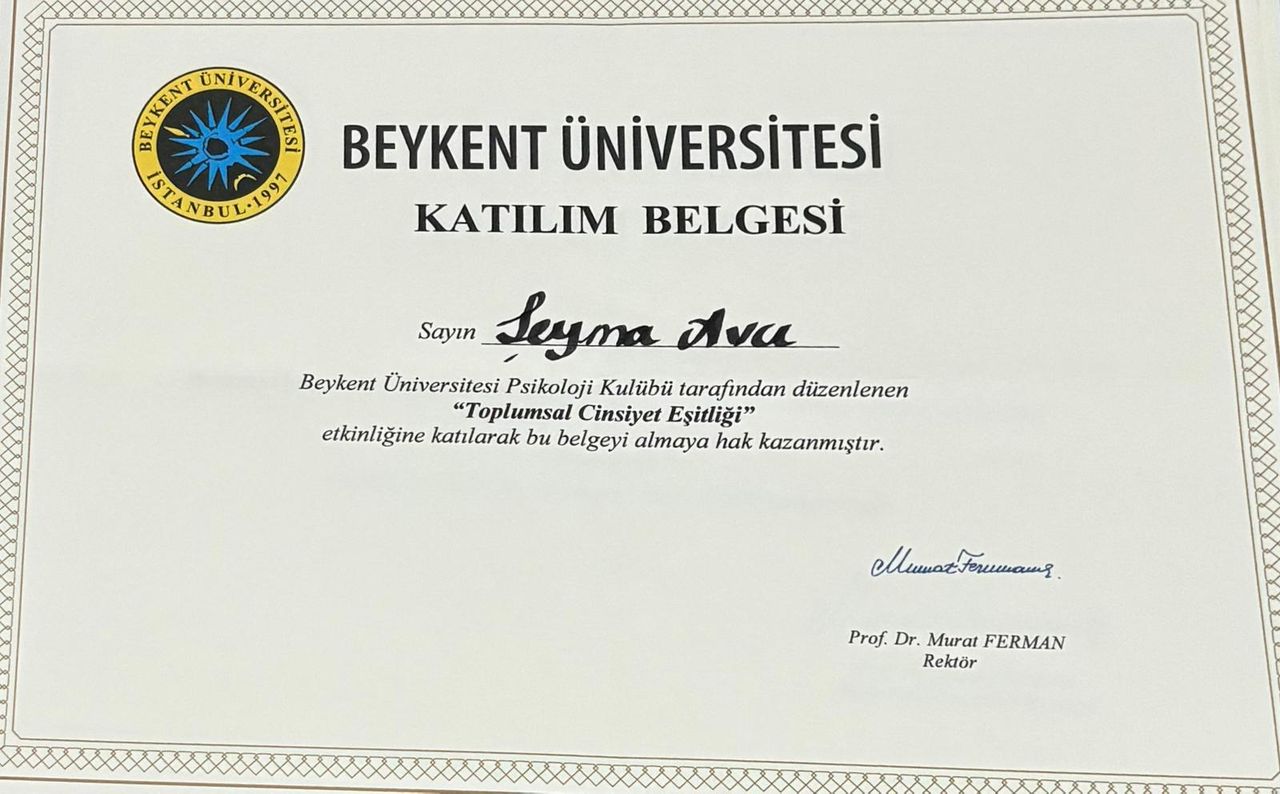 2024 yılında İstanbul Beykent Üniversitesi Psikoloji bölümünden onur derecesiyle mezun oldum. Üniversite yıllarımda alanımda deneyim kazanmak amacıyla çeşitli gönüllü stajlarda yer aldım. Aynı zamanda öğrenci kulüplerinde aktif roller üstlenerek başkanlık görevini yürüttüm.